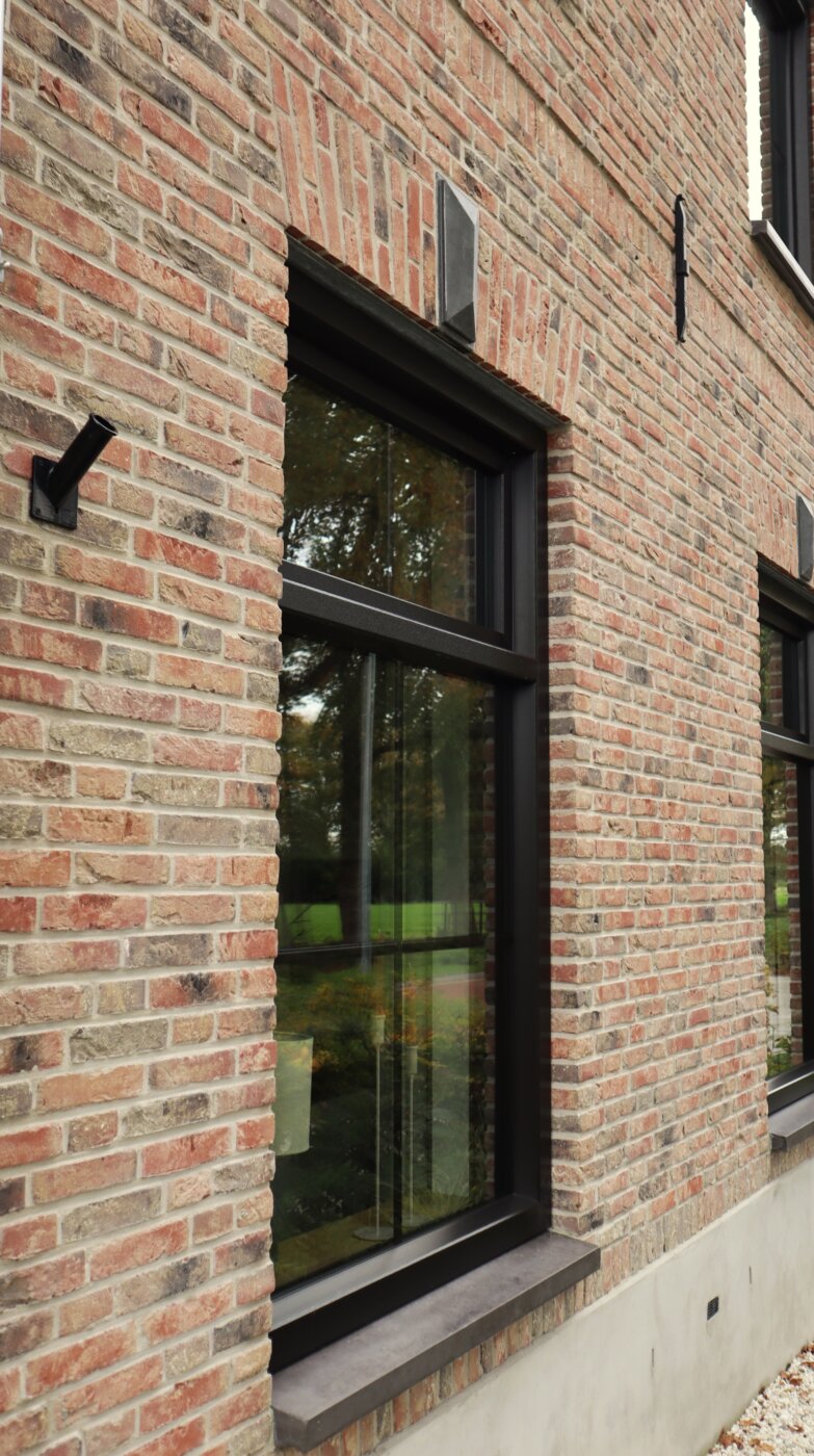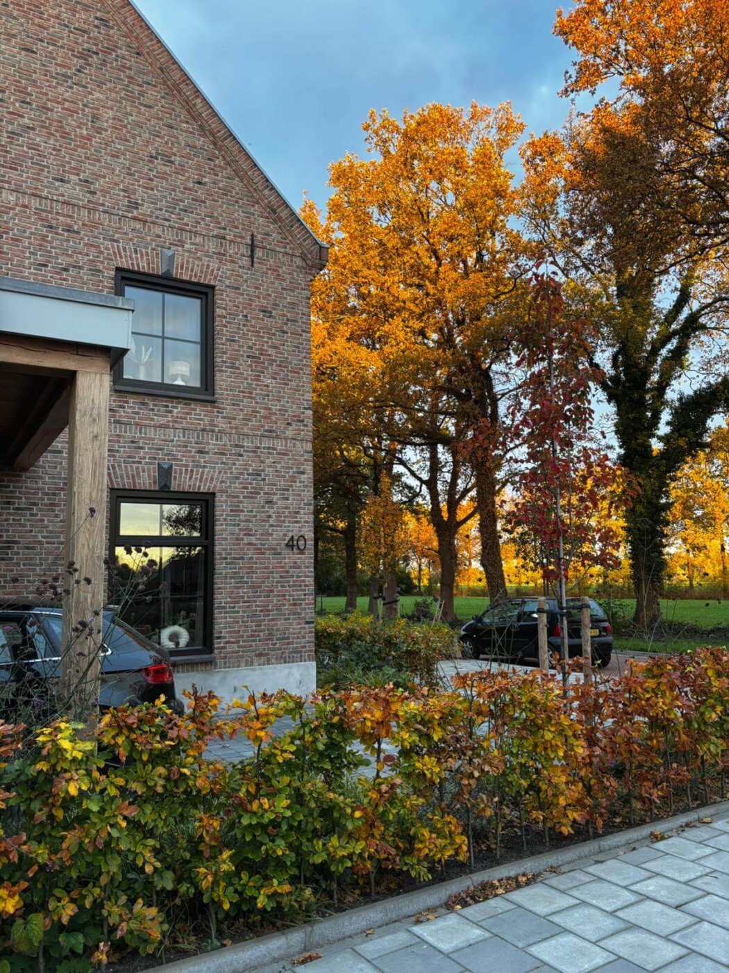 Na iets minder dan een jaar bouwen konden we erin gaan wonen en het resultaat mag er zijn! De verbijzonderingen in het metselwerk en de zorgvuldig gekozen kleuren en materialen geven de woning een warme en stijlvolle uitstraling. Daarnaast geeft de laan met eiken bomen de woning een extra chique uitstraling! Tip: let op waardevolle bomen bij het uitzoeken van een kavel, het geeft sfeer en diepte aan de kavel en extra uitstraling aan je woning! Hieronder het eindresultaat.