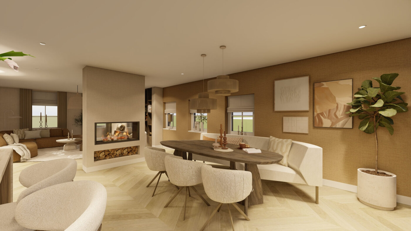 De ontwerpopgave was duidelijk: deze woning van binnen en van buiten transformeren tot een sfeervolle en toekomstbestendige woning. Met een compleet interieurontwerp en doordachte verbouwingskeuzes is een warm en ruimtelijk interieur ontstaan, waarin comfort en sfeer samenkomen. Een interieur waarin je je direct thuis voelt en dat klaar is voor de toekomst.